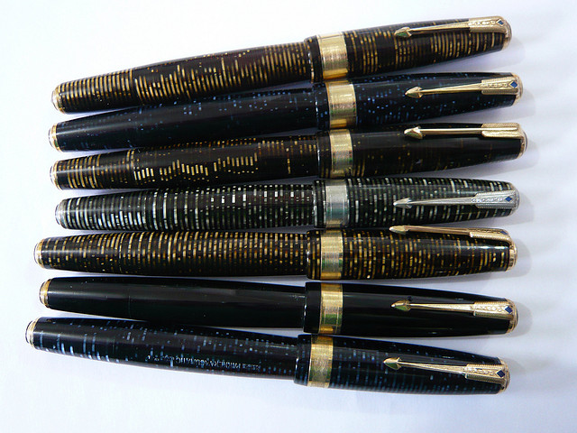 In FPN-P, my tocayo and I are known as the vintage-pen guys, since our collections (about 200 pens for me, and double that for The Other Butch, or TOB as he’s affectionately called in the group) lean heavily toward prewar pens. I have about 60 Parker Vacumatics—fabulous pens and eye candy, with colorful shimmering stripes—and have learned to repair them myself; TOB also likes Vacs, Sheaffers, and gold pens, and is far more advanced and experienced at repair than the rest of us. But what’s even more impressive about TOB is his armory of pen-repair tools, including a mean-looking heat gun and Dremel drill, maintained and arranged as carefully as a conscientious dentist might treat his picks and forceps. (The comparison isn’t as fanciful as it may seem; the dental pick is one of a pen repairman’s most constant friends.)