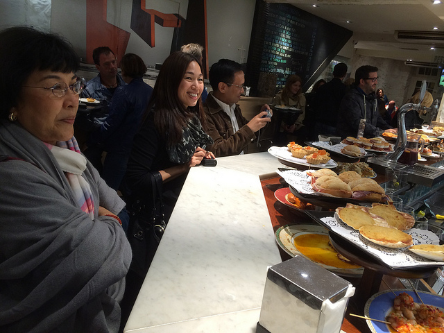 That said, food is a universal language, and while I’ve maintained a stubborn and silly pride in calling myself a culinary philistine (as usual, I brought six packets of ramen in my suitcase), I had to yield to the majesty of Basque cuisine, particularly their pintxos—the local version of the more familiar tapas. Laid out on the bar of every jatetxea we entered, and selling for a little over a euro each, the pintxos were scrumptious combinations of such staples as shrimp, crab, mushroom, asparagus, anchovy, jamon serrano, and bread.